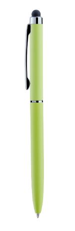 Metall-Drehkugelschreiber mit farbig mattem oder weiß glänzendem Gehäuse und silber glänzenden Beschlagteilen. Gummiertes Schaftende für die Touchscreensteuerung.